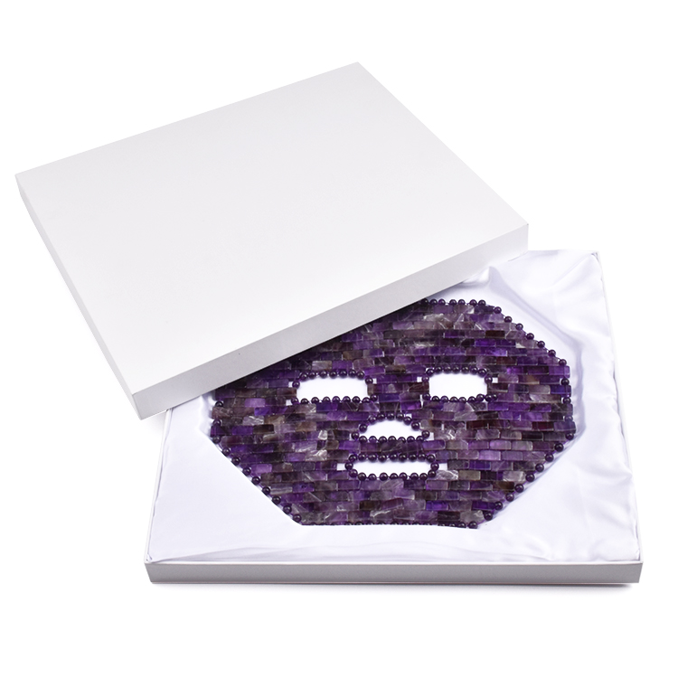 Our deep hydrating amethyst face mask is formulated with 100% natural, vegan ingredients that deliver intensive nourishing and moisturizing benefits for the skin. It leaves the skin feeling soft, soothed and looking radiant. Meticulously handmade, this mask is crafted with 247 amethyst chips and 144 amethyst beads.