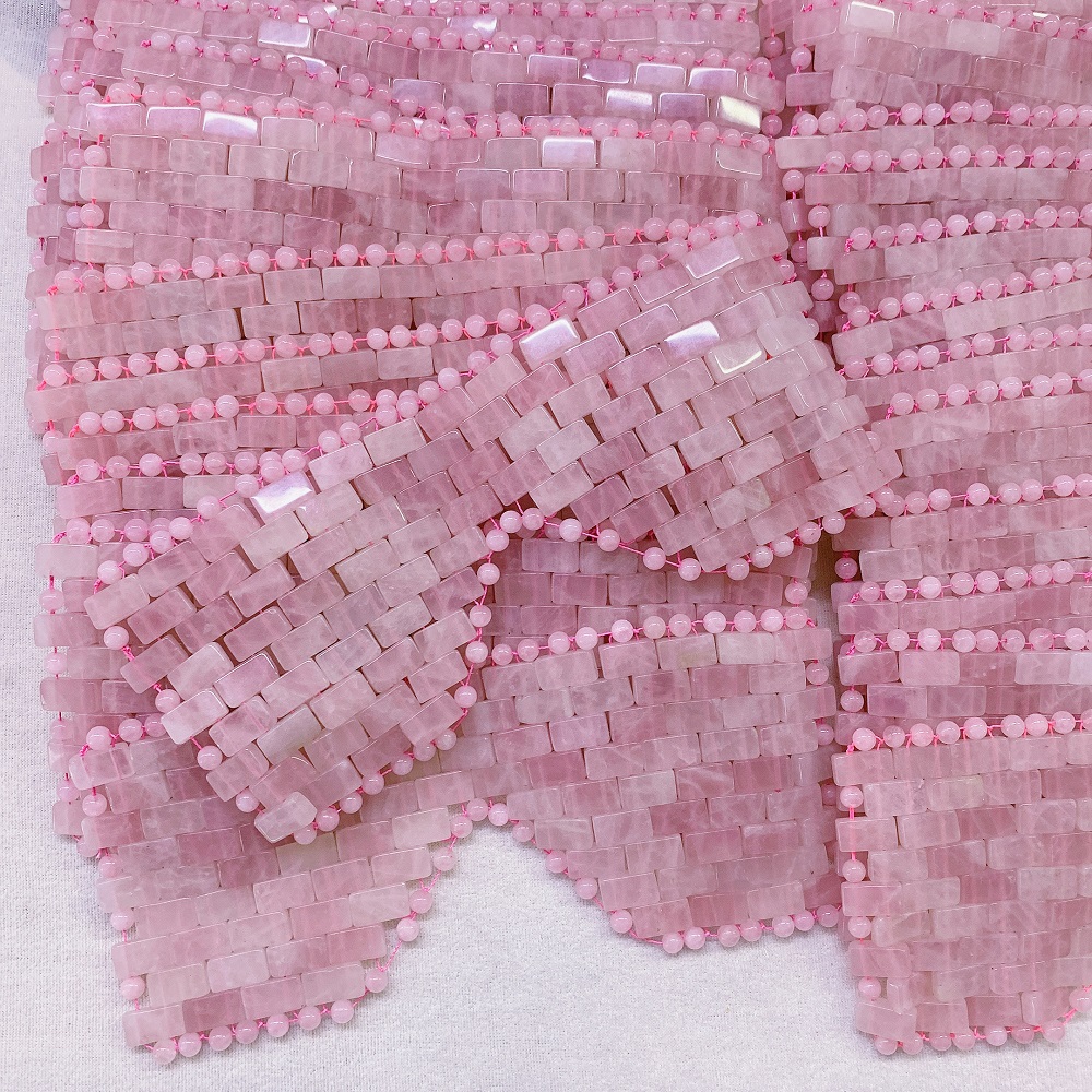 Rectangular Plates | Natural rose quartz cut into 16×8×4mm slabs (L×W×T), with 1.2mm-diameter threading holes at both ends along the length | |||